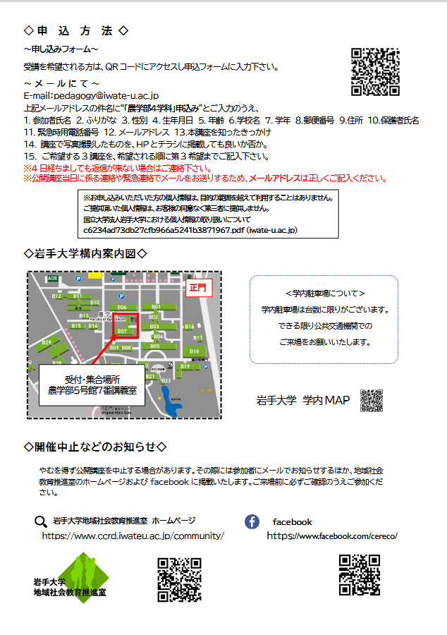 【お問い合わせ先】 岩手大学地域社会教育推進室