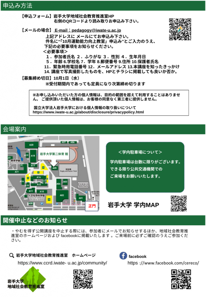 【お問い合わせ先】 岩手大学地域社会教育推進室