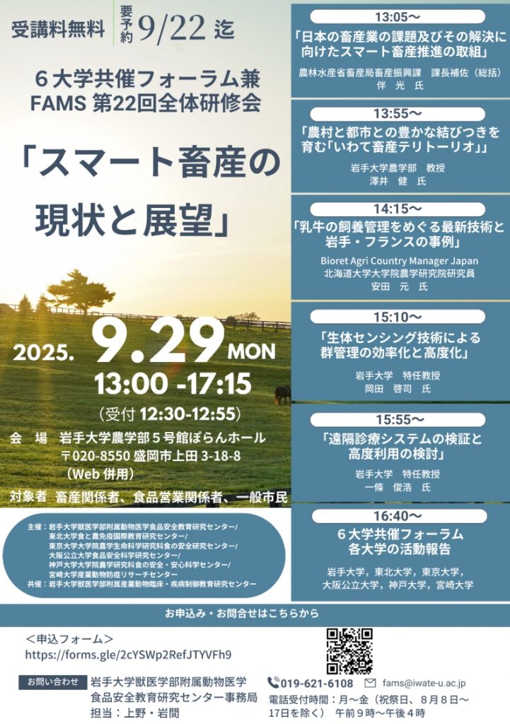 6大学共催フォーラム兼 FAMS第22回全体研修会『スマート畜産の現状と展望』開催のお知らせ